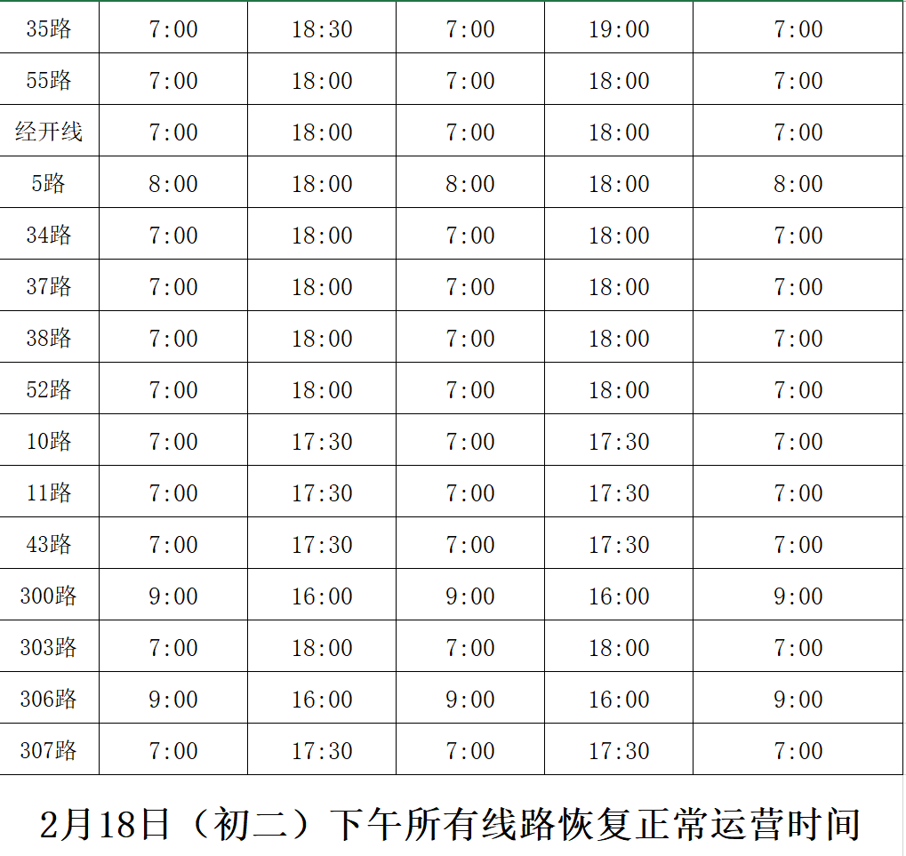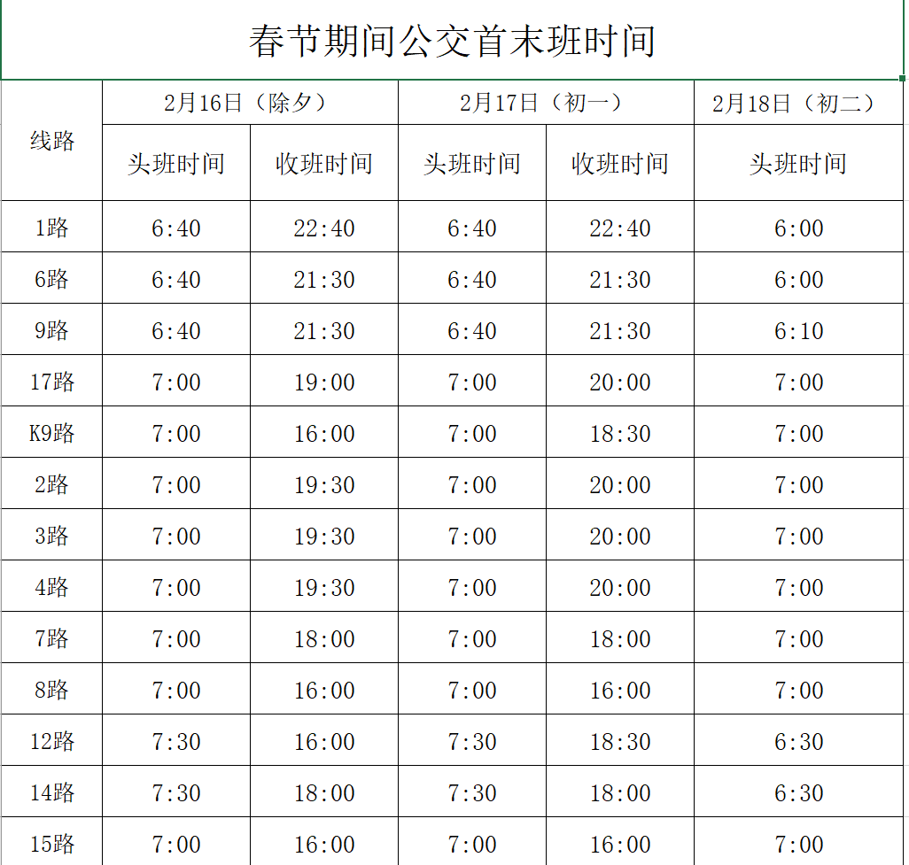 春節(jié)期間公交首末班時(shí)間